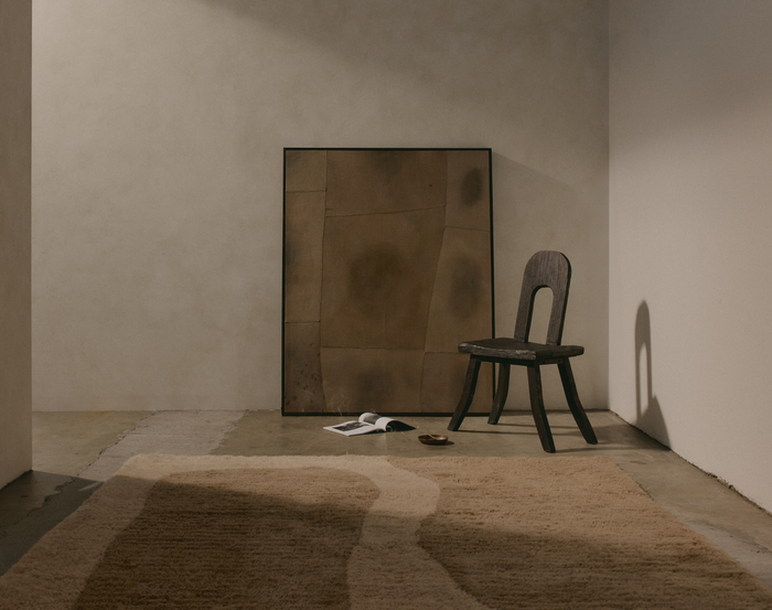 Intentional minimalism defines the character of Alice’s home. Her aesthetic showcases a thoughtfully curated selection of distinctive antiques, beautifully juxtaposed against a serene neutral palette that fosters a sense of peace in the place. This cherished space is designed to grow and adapt with her family, adorned with beautiful yet functional pieces like the Awa rug from the McMullin x Double collection. With its abstract taupe shapes on a light canvas, this minimalist piece seamlessly integrates into the timeless design framework Alice has established. Named after the Māori word for "river," Awa symbolises the gentle flow of freshwater from its source, reflecting a deep connection to the stunning landscapes of New Zealand, from which Alice was raised. Serving as a tribute to nature, the rug invites the outdoors in and embodies the concept of circularity within the living space — a love letter to the natural world.