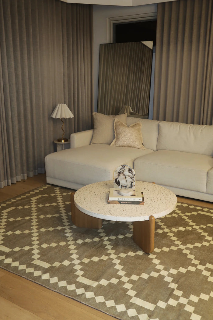 Size — Your rug can illuminate a space, help to design a cosy arrangement or define a larger living area. When in doubt, always size up! If placed in the bedroom, dining room or living room, always ensure the focal furniture sits within the borders of the rug. Maximise visual airiness by leaving at least 30cm of space between your rug and the walls.