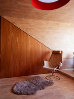 The Mackenzie Sheepskin in Cream features a distinctive organic silhouette that immediately sets it apart from traditional rectangular rugs. This sculptural piece showcases the classic contoured shape of genuine sheepskin, recreated in a kinder, washable alternative that maintains all the visual appeal of the original.