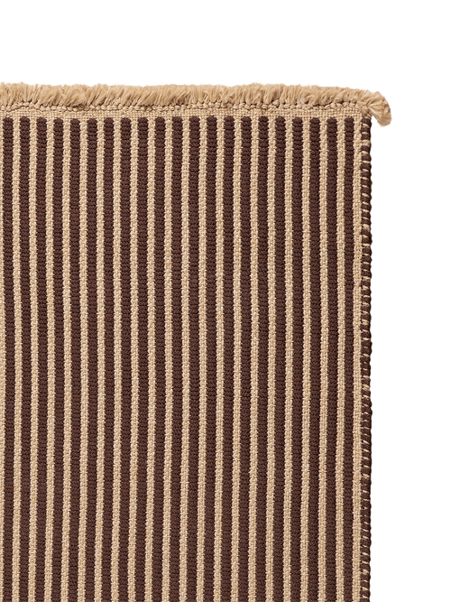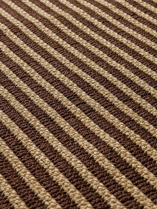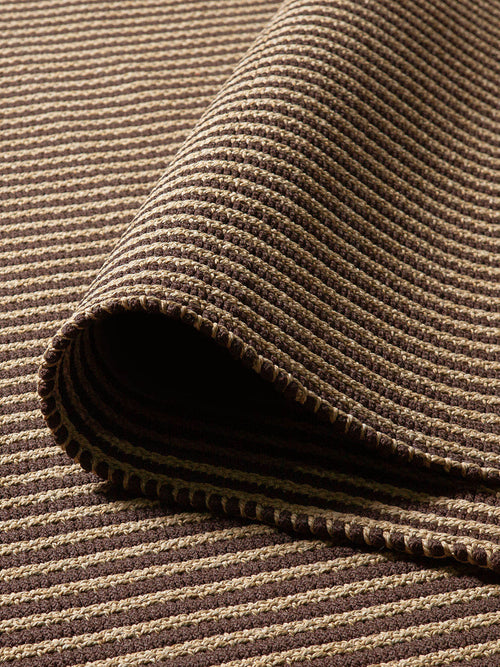 Introducing the Transition Outdoor Ribbed Rug in Brown. Handwoven from olefin yarn – smooth, lightweight, and built for outdoor durability. Highly stain resistant, moisture resistant, and UV stable. Naturally resists mould, mildew, and fading. Built to withstand weather and wear. Easy to clean with spot cleaning or a garden hose. Goodweave Certified. No rug base needed.