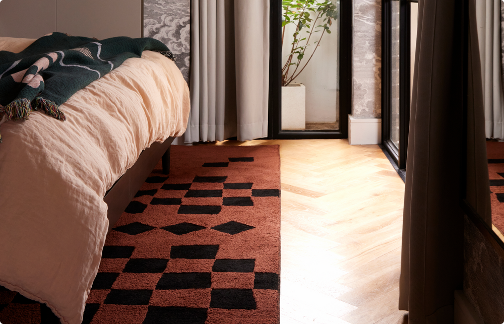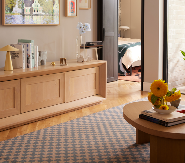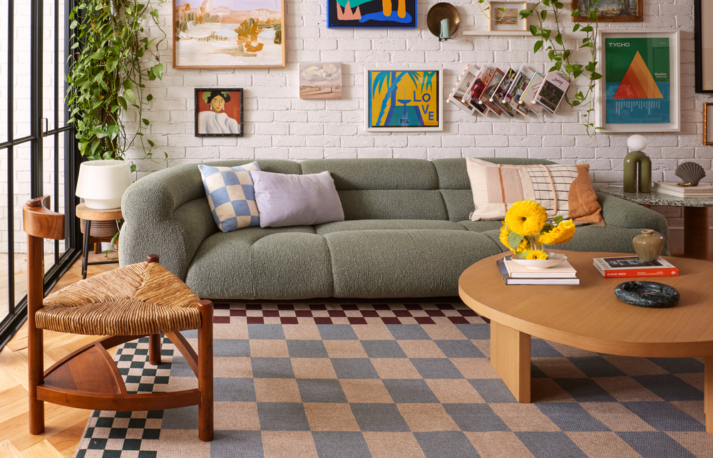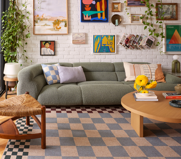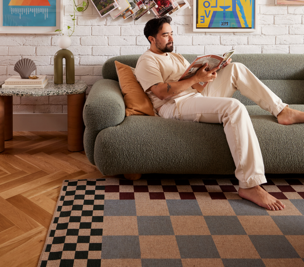 Checks and plaids reimagined on modern, vibrant rugs that square up to real-life messes. We’re not just thinking outside the box, we’re bringing a couple of ‘em home.