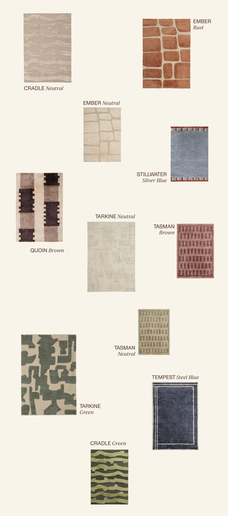 The Wild South Collection represents a unique collaboration between celebrated artist Jono Fleming and Double, translating Tasmania's untamed wilderness into table-tufted and handwoven pieces. Each rug captures the raw beauty and organic textures of Australia's southern landscapes, from ancient rainforests to windswept coastlines. Jono’s artistic vision combined with Double's innovative construction methods creates rugs that are both collectible art pieces and practical floor coverings, offering designer quality at accessible prices.