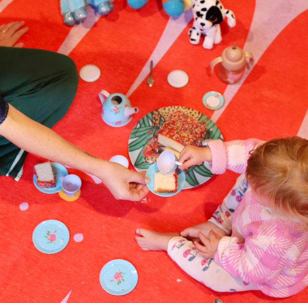 @AMYGIBBSDESIGN“Now my daughter is a little bit older, we have been able to spend time creating art together. It has been so special watching her show an interest in all my paints, texts, and other art mediums. With Double’s washable rugs, we can get messy in her playroom without the worry of ruining our gorgeous rug. She is also in her tea party era, but I’m more than happy for her to use all the food she pleases for her teddies to enjoy, as I can just pop the rug in my washing machine, and it’s back to being as good as new!”
