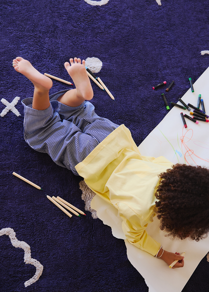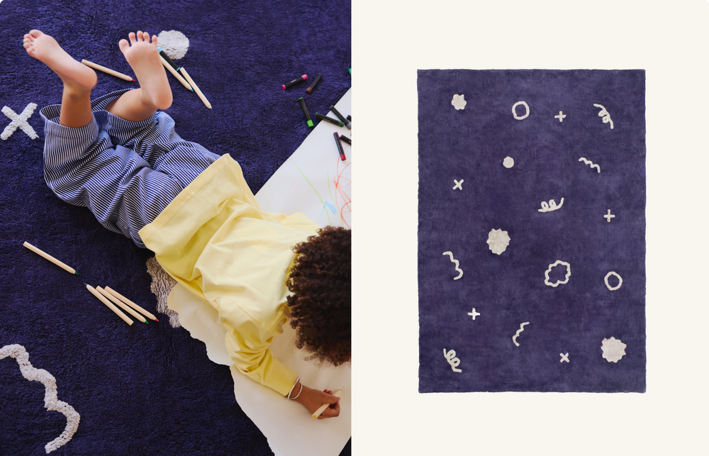 The Kids Organic Cotton rugs are designed with versatile sophistication—playful enough to spark children's imagination, yet refined enough to complement a considered interior scheme. Each design captures energy and character through thoughtful use of colour and pattern, avoiding the overly juvenile aesthetics that quickly feel dated as children grow.