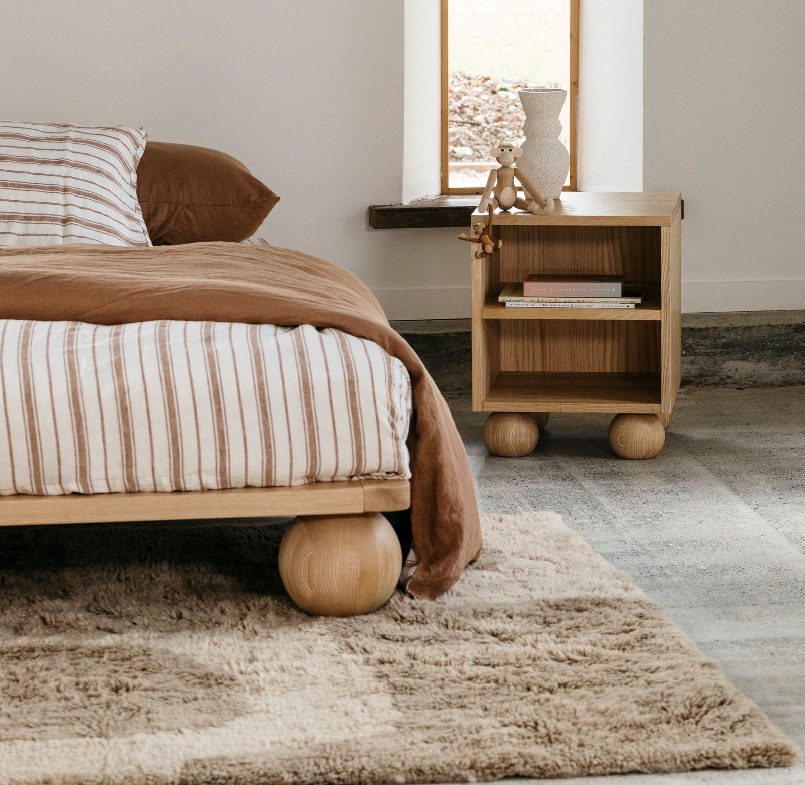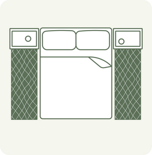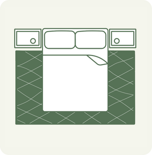 Accentuate your bed's focal point with a rug that spans the width of the bed, adding warmth and softness underfoot while enhancing the room's overall aesthetic. Depending on the size of your bed, it is recommended to choose a rug that extends 45-60cm beyond the edges of the bed.