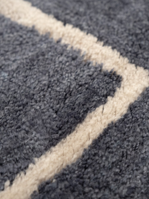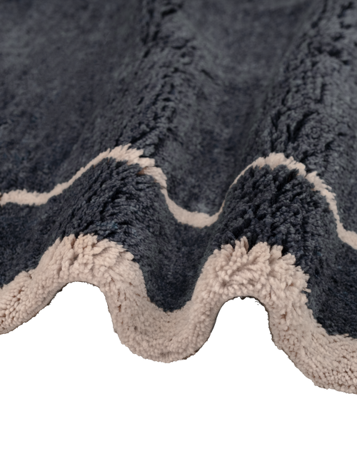 This washable New Zealand wool rug in 18mm cut pile moves like turbulent currents beneath storm clouds—each abrash-dyed fibre captures the exact chromatic chaos of tempest waters. Steel blue depths shift and surge like ocean swells, creating dimensional movement that transforms rooms into seascapes of raw power and sophisticated beauty.